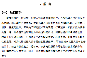人形机器人线性关节与行星滚柱丝杠专利导航分析报告